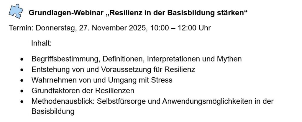 Webinar: Resilienz bilden und stärken in der Basisbildung